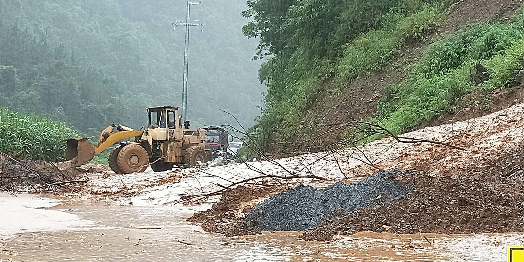 2018年8月1日11:20右江公路管理局管养的G323(原X736线)瑞金至清水河线K934+500(右江区大楞乡龙细村)路段因上边坡塌方泥石流交通中断,无人员伤亡和滞留车辆。已在中断路段两头设置好交通告示牌及安全标志,提醒往泮水方向的过往车辆绕道靖西县渠洋方向行驶,目前养护部门正在组织机械、人工抢通,预计8月1日12:30时恢复通车。