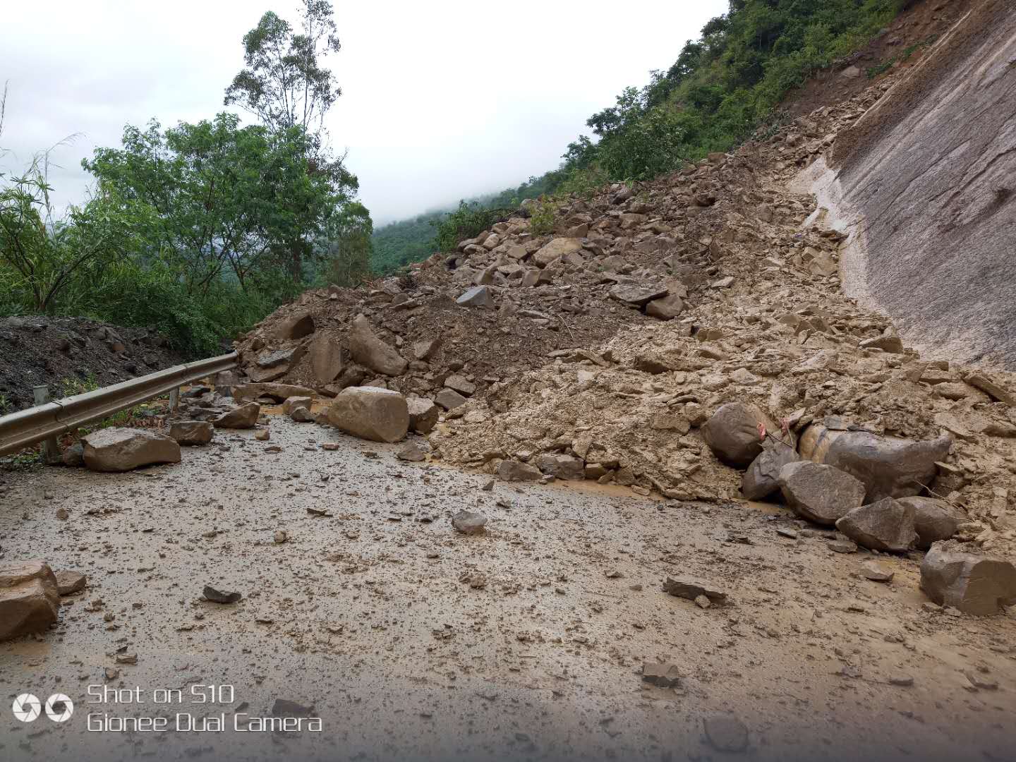 2.田林公路管理局管养的国道357线东山至泸水K2131+720-K2131+880(原S321线K40+700-K40+860田林县八渡乡百六村)路段,2018年8月3日9时25分因连续大暴雨,上边坡塌方覆盖整福路面,数量约12200立方米,导致交通中断,目前塌方两头共有40多辆车滞留,无人员伤亡,现已在中断路段两头设置好交通告示牌及安全标志,提醒往西林县车辆绕国道324线到隆林县城后,再走县道804线到达目地的。由于上边坡不稳定,落石继续下塌,增加抢通难度,目前无法预计恢复通车时间。