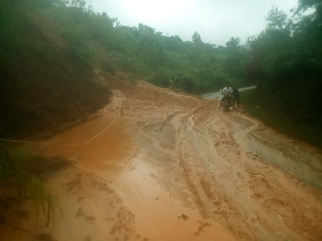 1.那坡公路管理局管养的省道518线那坡至平孟(原X781线62+800那坡县那香屯路段),2018年8月3日9时40分受连夜大暴雨影响,造成山体滑坡路基坍塌(长150米,宽20米,高20米),导致交通中断,目前20辆车滞留,无人员伤,现已在中断路段两头设置好交通告示牌及安全标志,提醒往平孟镇车辆绕国道219喀呐斯-东兴通行。由于路基下塌数量大,需向有关部门作水毁报告,修复时间目前无法预计。