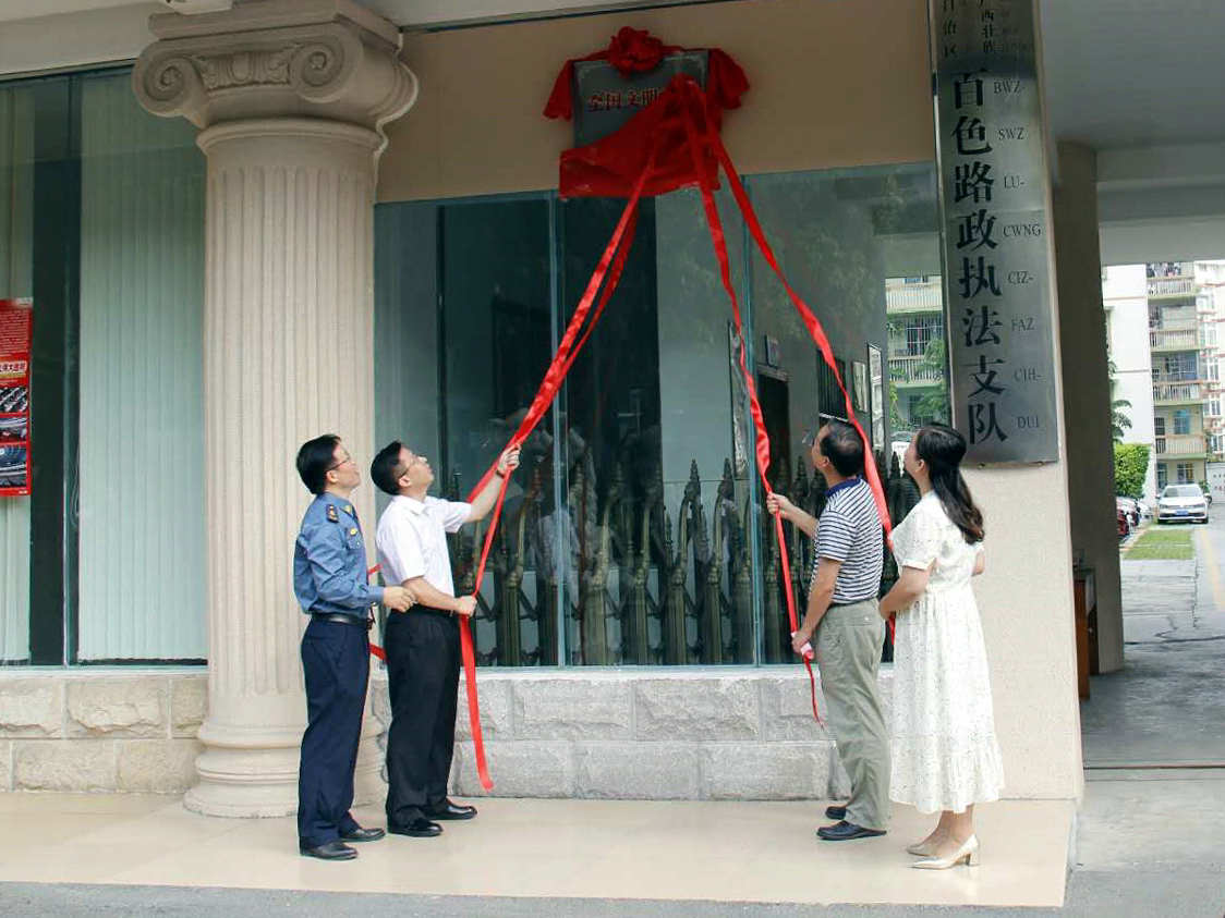 ▲百色路政执法支队“全国文明单位”揭牌仪式现场