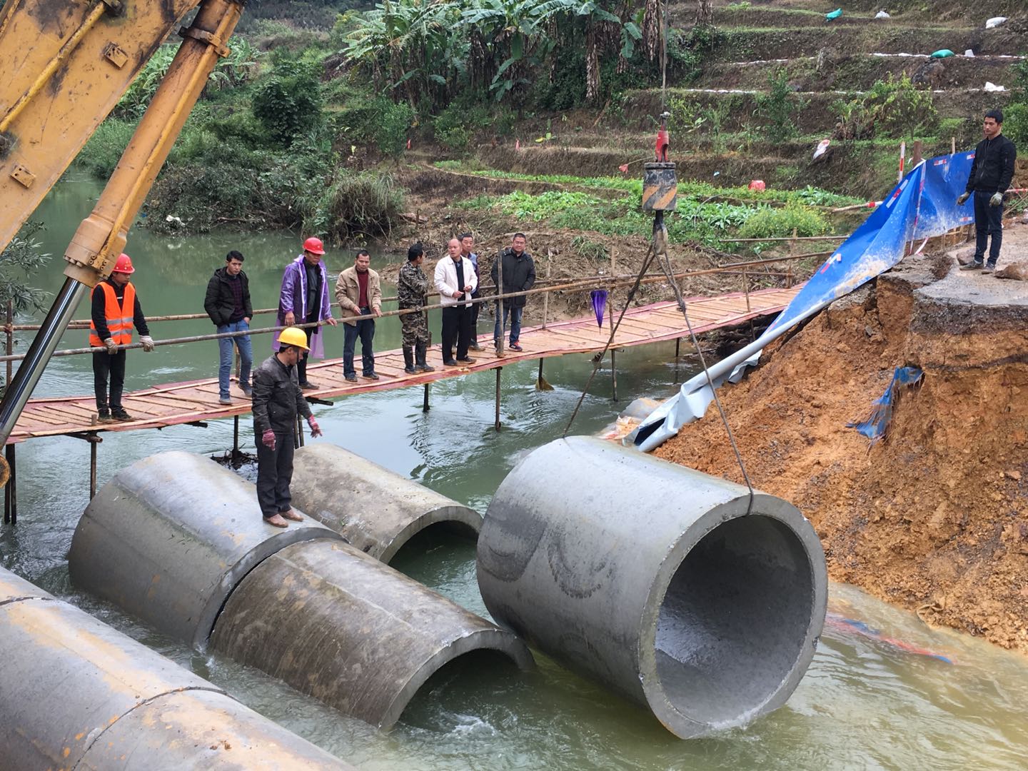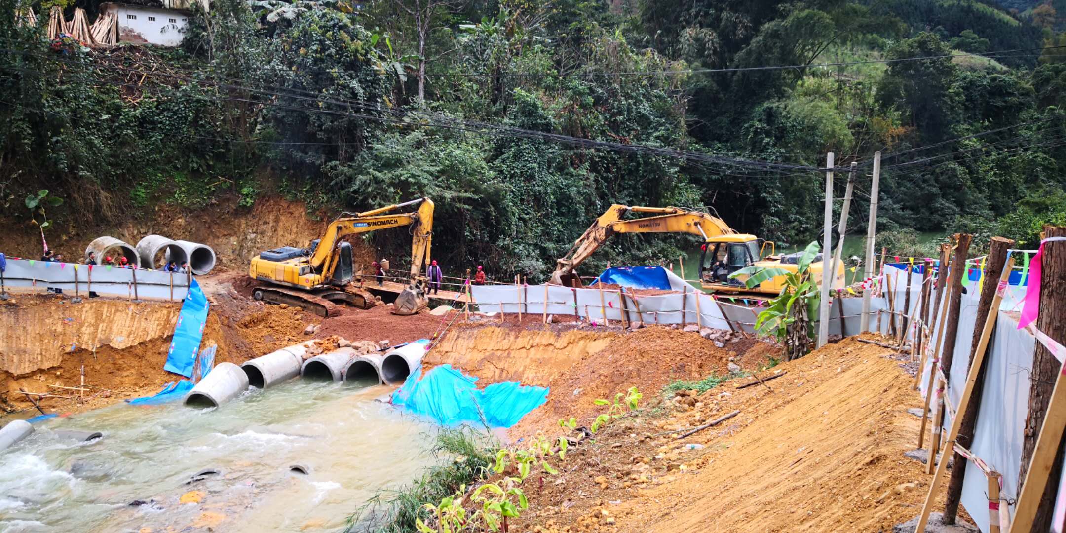 2019年1月9日上午10时,那坡公路局管养的G219线K9377+386 (原S325线东兴至那坡)K705+770百省乡上荣村上荣屯路段,下荣二桥改建工程施工便道因水毁导致断通,该路段原预计1月10日下午17时恢复通车,由于1月9日持续降雨,河水上涨增加抢修难度,导致抢修进度缓慢,目前未能实现通车。预计1月11日中午12时恢复通车。