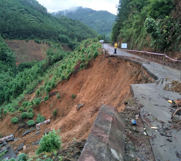 5月29日上午7时许,田东公路管理局管养的S306线K137+300田东县朔良镇群敏村路段,因受强降雨影响下边坡塌方,导致路基缺口,数量:长30米,宽5米,深12米,剩余的小半幅路面出现较大裂缝,有随时坍塌的可能;目前已封闭交通。受灾路段无辆车滞留,未造成人员伤亡,现田东公路管理局已在该路段设置好交通告示牌及安全标志,提醒往田东县城的车辆绕行G243线田东至巴马公路行驶。由于下边坡有继续坍塌的趋势,目前无法进行抢通,尚无法预测通车时间。(田东公路管理局 黄秋玉)