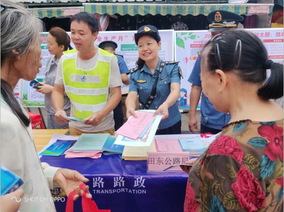 Δ田东公路管理局工作人员向群众发放安全宣传资料
