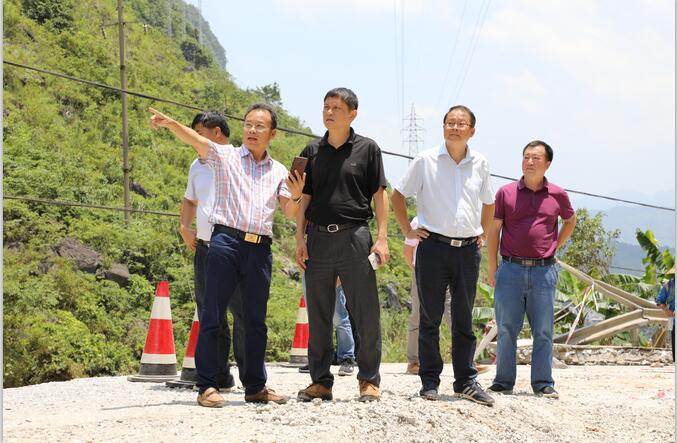 6月21日,百色市人民政府莫前锋副市长到凌云G212线视察“6·17”重大自然灾害造成的公路损毁情况,百色市交通运输局局长龙宗福、百色公路管理局副局长陆地康、凌云县人民政府副县长韦长贵及凌云公路管理局党政主要领导陪同。