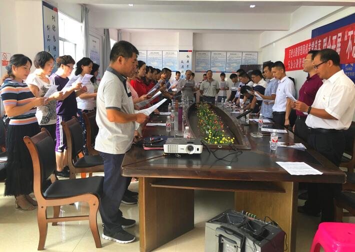 16日上午全体党员统一到乐业公路管理局会议室开展学习交流活动,首先由两个党总支的书记分别简要介绍各自党总支基本情况。随后参加活动的党员集体面向党旗,一起举起右手在乐业公路管理局党总支书记谭天水同志领誓下重温入党誓词,颂唱《没有共产党就没有新中国》《走进新时代》等革命歌曲。交流会上,为加深党员对党的基本知识、十九大以及习近平新时代中国特色社会主义思想的认识,两个党总支开展了党的知识抢答比赛,在紧张的比赛中既体现了公路人团结协作的精神又积累了相关知识。