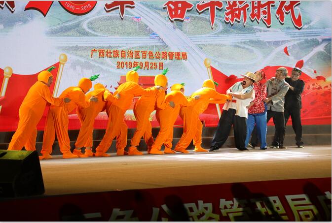 为热烈庆祝中华人民共和国成立70周年,展示百路人良好的精神风貌,进一步深化“不忘初心、牢记使命”主题教育的内涵, 9月25日晚,百色公路管理局在该局灯光球场举行由该局机关及13个下属单位参加的“壮丽70年,奋斗新时代”文艺晚会。