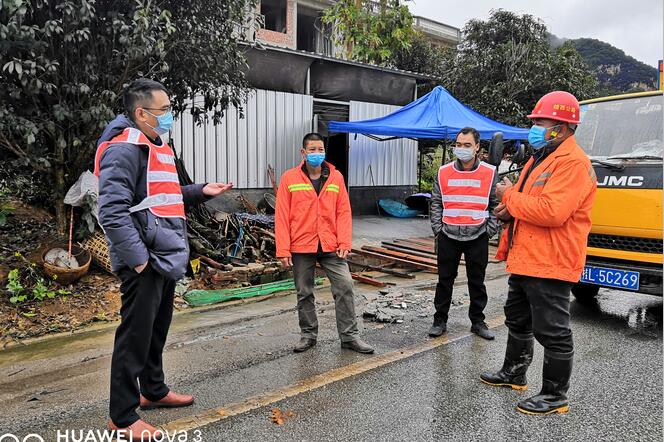 近日,靖西公路养护中心结合疫情防控形势和本中心生产工作实际,开展路面修补等养护工作,对沿线边沟、排水沟、涵洞等清理疏通,逐步推进复工复产相关工作。图为该中心领导在龙临养护站指导复产复工工作。