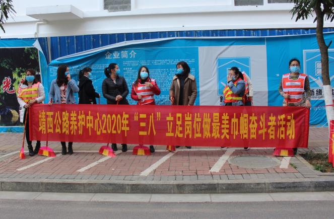 “三八”妇女节来临之际,靖西公路养护中心组织女职工到办公区、卫生责任区开展立足岗位做最美巾帼奋斗者活动,清理杂草、杂物等垃圾。