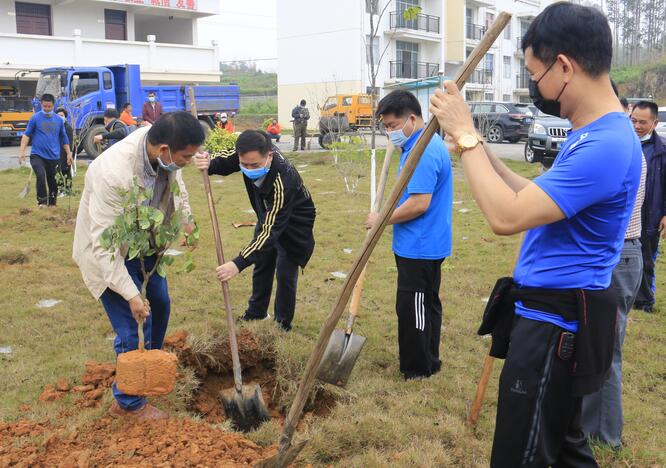 日平果公路养护中心组织干部职工在都阳养护站种植绿化树苗。活动中,干部职工们不畏辛苦,热情高涨,顺利完成植树活动,为绿化家园奉献自己的一份力量。