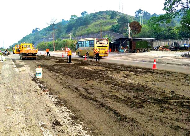 3月24日早,田东公路养护中心巡查发现G324线K1828+700~900路段路面有大量滤泥散落,形成长近150米、宽6米的污染带,影响路容路貌,存在安全隐患。该中心林逢养护站养护人员经过1个多小时的清理冲刷,将污染路面清理干净,保障了公路的安全畅通。