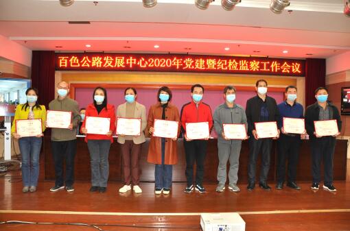 会议对百色公路系统2019年度综合考评优胜单位、年度生产工作先进集体、先进个人,和2018-2019年度先进基层党组织、优秀党务工作者、优秀共产党员进行表彰。