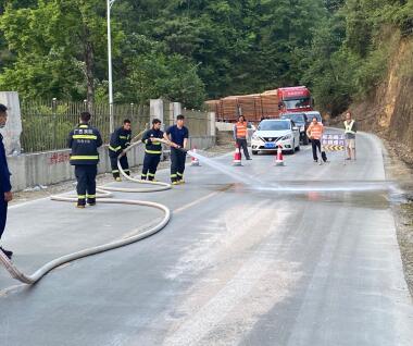 5月2日,乐业公路养护中心管养的G212线K2136+100-400处近300多米半幅路面发生油污泄漏,该中心采用细砂覆盖吸附油污的方式处治污染的路面,并协助消防人员利用高压水枪对细砂覆盖吸附油污后的路段进行全面冲洗,恢复路况。