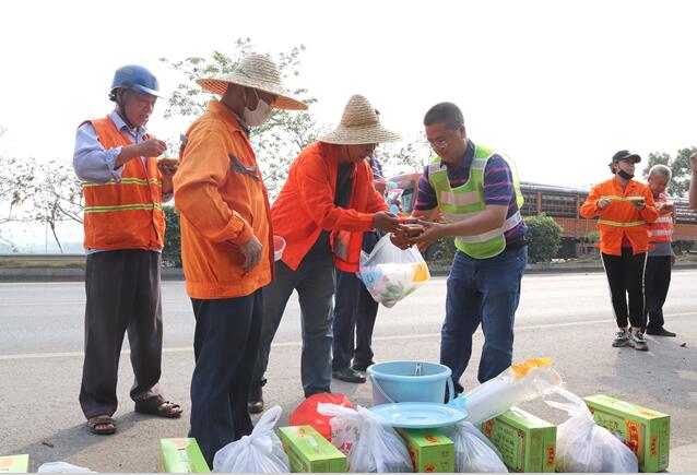日,田东公路养护中心为一线养护站职工送去绿豆粥、清凉饮料等清凉品,对一线养护工进行慰问,该中心领导嘱咐一线职工做好防暑措施,合理安排工作时间。