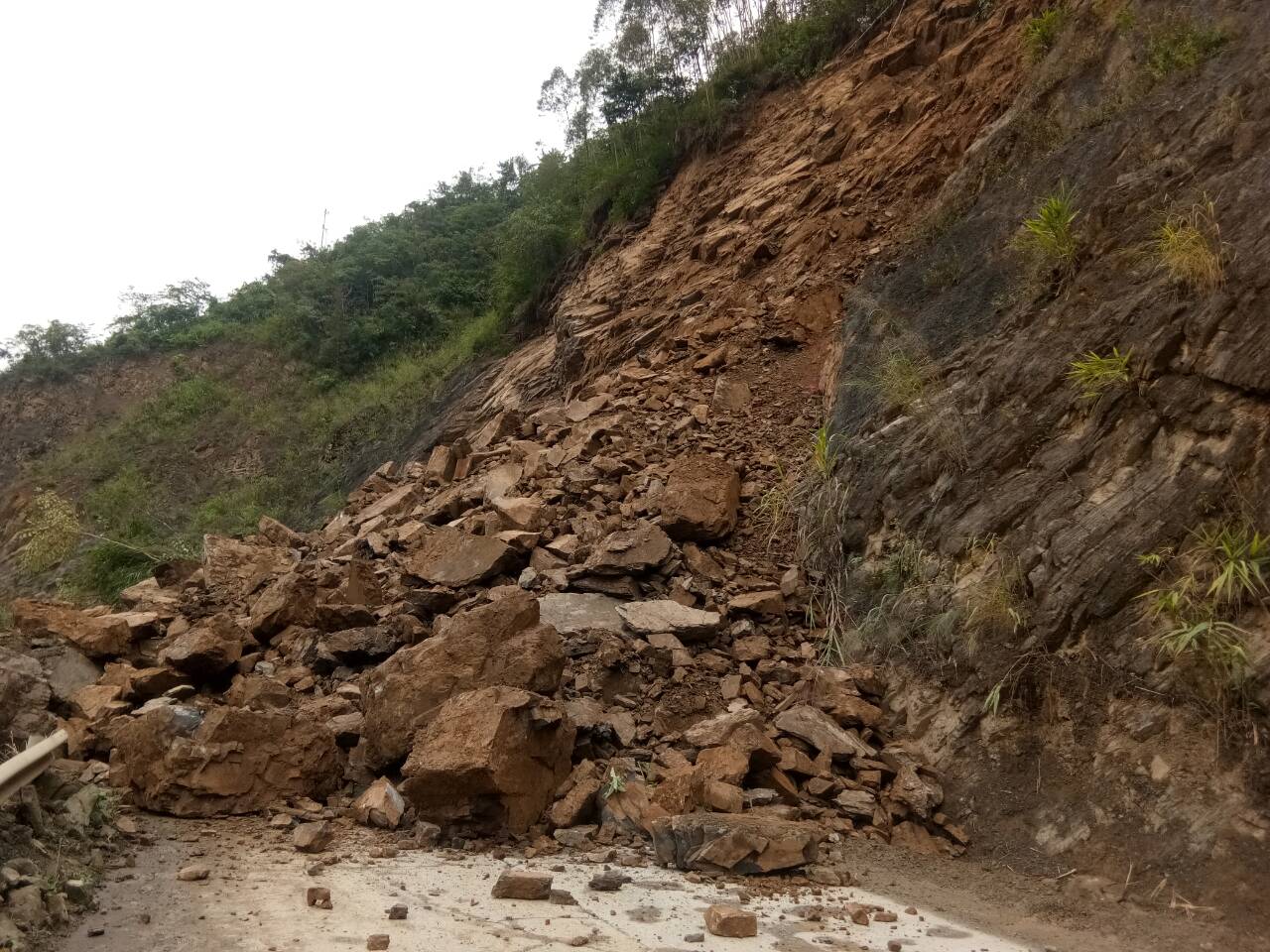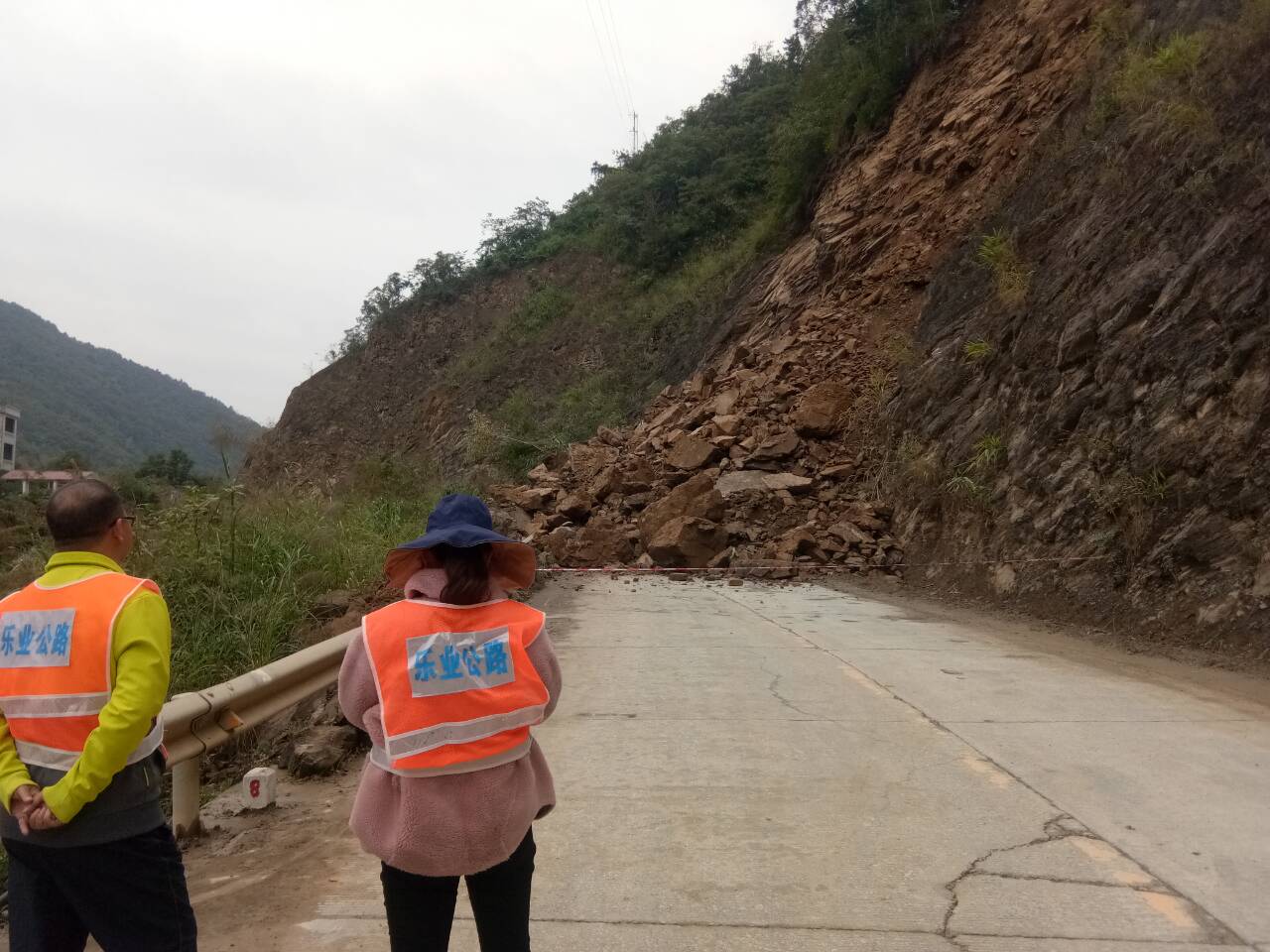 2020年11月02日12时50分乐业公路养护中心管养的国道212线(兰州至龙邦公路)K2094+740(乐业县逻西乡巴劳村),因连续降雨造成上边坡塌方约6000立方,覆盖全幅路面,导致交通中断,塌方路段两头滞留10余辆车辆,已经劝返,目前无车辆滞留,无人员伤亡。已在中断路段两头设置好交通告示牌及安全标志,提醒逻西往河池天峨、贵州方向车辆绕道G69高速公路通行。因目前仍有零星塌方下落,暂时无法预计恢复通车时间。