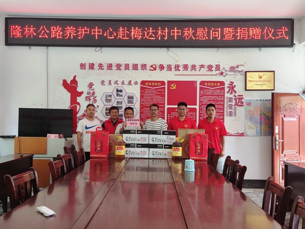 中秋佳节临近,为表达对乡村振兴驻村工作队员的关心和村后盾单位的支持。9月15日,隆林公路养护中心前往帮扶村克长乡梅达村,慰问中心驻村工作队员。为他们送去食用油、清凉饮品等慰问品。同时,作为梅达村后盾单位,根据该村实际困难,隆林中心捐赠2000元疫情交通补助金及1000元办公耗材用品。