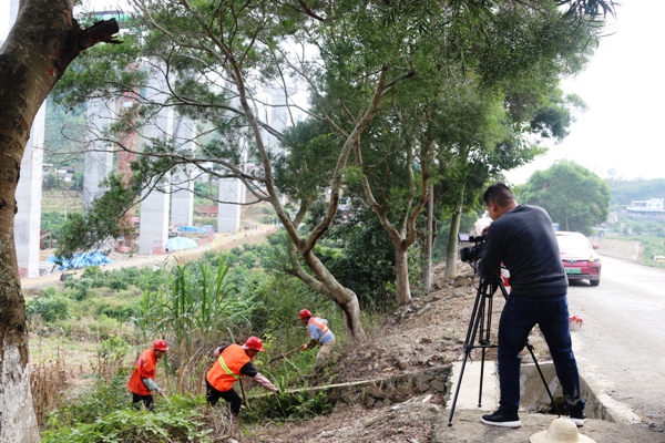 在G357线作业现场,县融媒体中心的记者们一边用摄像机、照相机记录下一线养护工人们忙碌的的身影,一边询问他们工作的情况。迎检期间该中心一线养护工人们加班加点,完成路树刷白、警示墩及混凝土防护栏两端重新粉刷红白相间油漆160公里,完成率84%,完善各类公路沿线设施96公里,清理塌方完成12622立方米,完成率93%,同时加强路面清扫、路肩杂草和边沟淤积等清理工作,全力打造“畅、安、舒、美”的道路通行环境。记者们对养护工的工作高度认可,并称他们为“公路美容师”。