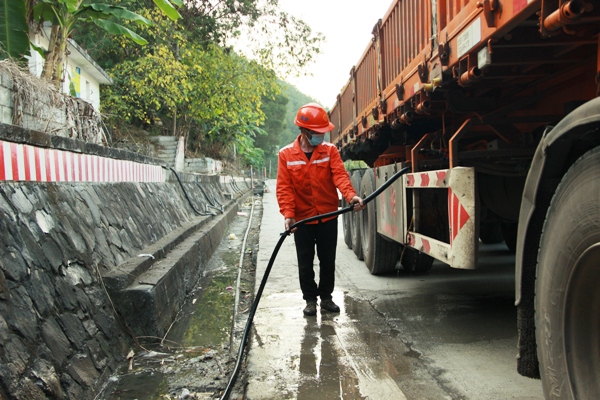 志愿者们深入公路沿线,并在板坝养护站处设置了免费加水点。百楼桥至腊仁往贵州交界处方向有连续15公里的长下坡,大型货车若无足够的水对制动进行冷却,极有可能发生事故。免费为过往货车加水,可有效减少交通事故发生;在加水点、停车场、高速路口、加油站向过往卡车司机发放安全出行的宣传单,为他们送上矿泉水、泡面等,同时提醒他们近期降雨较多注意行车安全,不要疲劳驾驶。