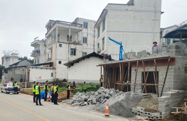 本次联合巡查发现,凌云县伶站乡均亭村那里屯有村民在国省干线公路控制区内违法建房,联合协作成员立即要求当事人到场,对其详细讲解《中华人民共和国公路法》《公路安全保护条例》相关法律规定,下发违法行为通知书、责令整改通知书,督促其严格按照出具的责令整改通知书要求拆除违法建筑。