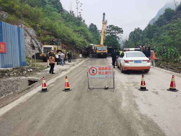 接到报警后,该中心启动应急预案,立即派出应急保障小组、养护站及机关各科室相关人员奔赴现场,组织抢通。到达现场后,工作人员迅速在公路两侧摆放警示标志和安全锥桶,开启警示灯同时做好现场疏通劝导,协助交警做好车辆交通指挥引导,确保现场滞留车辆有序停放。