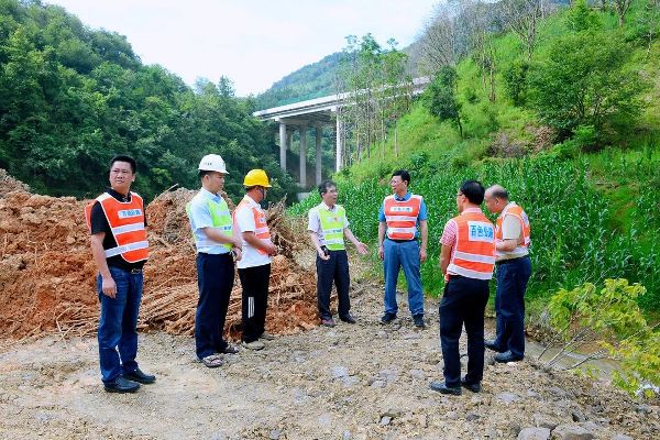 2022年6月18日、19日,自治区公路发展中心何开送副主任一行到百色公路发展中心现场检查指导普通国省干线公路安全生产和防汛减灾救灾工作,重点对平果、凌云、乐业公路养护中心管养线路的灾毁和存在边坡塌方安全隐患点段进行现场检查指导分析,并提出解决问题办法意见。