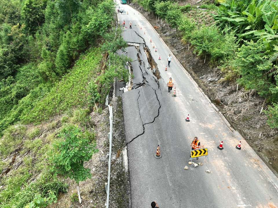 那坡公路养护中心已在塌方路段两头设置断通标志,禁止车辆通行。因现场路面还有下沉趋势,存在安全隐患,预计2022年9月13日恢复通车。