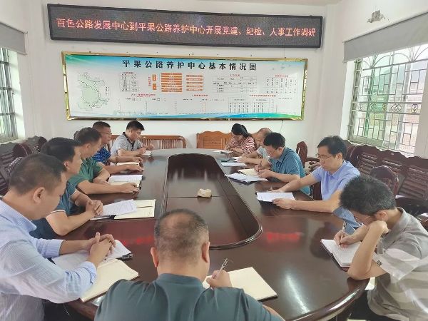 为全面了解、掌握基层单位党建、党风廉政建设及人事管理工作情况,共同研究务实举措,上下联动推进基层党的建设、人事管理及队伍建设等工作高质量发展,10月26日至28日,百色公路发展中心党委书记罗永福一行到那坡、平果公路养护中心开展党建、人事等工作调研。