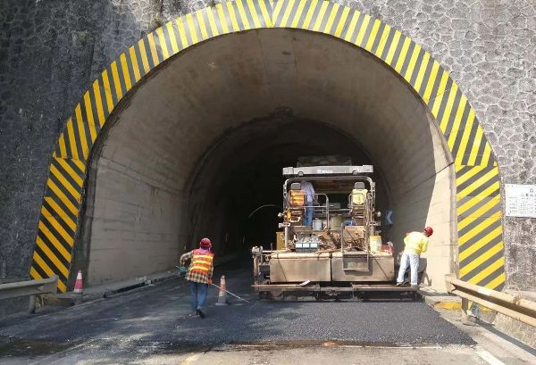 三叠岭隧道地处广西百色靖西市境内G359线(佛山-富宁),是靖西市重要的旅游线路,为通往通灵大峡谷以及三叠岭瀑布等有名景区的必经之路,且交通货运繁忙,是连接崇左地区的重要干道。三叠岭隧道密闭空间内的施工环境复杂,通风条件有限,低碳净味改性沥青完成沥青混合料拌合并在三叠岭隧道摊铺作业,不同于传统热拌沥青混合料高温条件下释放大量的沥青烟气;低碳净味改性沥青在高温条件下可有效减少有害气体排放,减少沥青异味,改善施工人员的工作条件,实现隧道施工的安全、高效与可持续性,助力公路建设“绿色施工”。