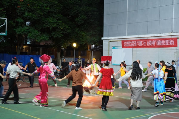 宣讲活动由百色市“桂姐姐”宣讲团成员带领职工学习党的二十大报告精神以及习近平总书记关于民族工作重要论述和党的民族理论政策、民族法律法规,切实提高党员干部对民族团结进步创建工作重要性的认识,提升党员干部职工服务民族地方各项事务能力。随后,少数民族职工身着少数民族服饰来到篮球场开展“我们的节日——彝族年”跳竹竿、篱火等精彩纷呈的活动,现场轻松愉悦、其乐融融。
