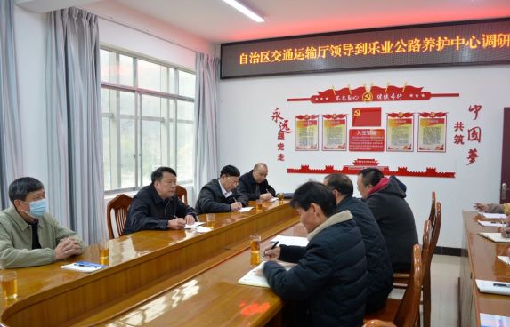 12月16日上午,自治区交通运输厅二级巡视员林奇茂一行到乐业公路养护中心开展工作调研指导,并召开交流座谈会。百色公路发展中心党委书记罗永福陪同调研。