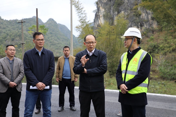 陆晓明一行实地深入到德保县国道212线德保兴旺至多洋K2433+200~K2439+200段沥青路面大修项目、西林县国道357线东山至泸水K2219+700~K2235+700段沥青路面大修项目现场调研指导,详细了解项目施工进度、工作亮点、安全生产情况以及存在的困难和问题。