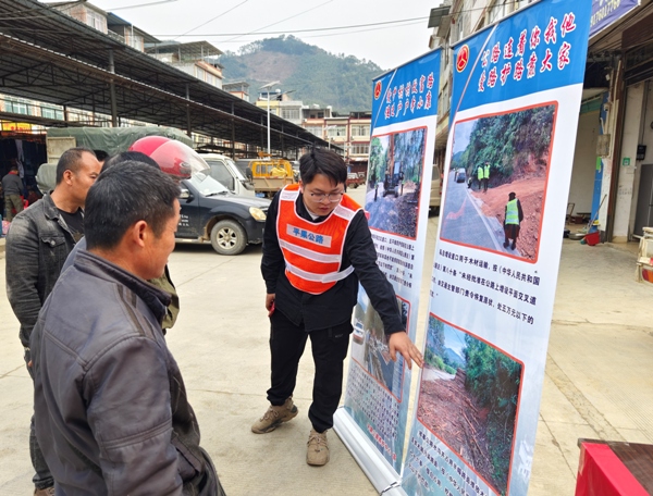 积极入村宣传。该中心联合同老乡政府、海城乡政府、平果市交通运输综合执法大队到涉及侵权的村屯开展宣传教育,向村民发放宣传手册,普及公路法律知识,并告知侵权的后果,动员村民及时处理堆放在公路边的木材,保障安全畅通。