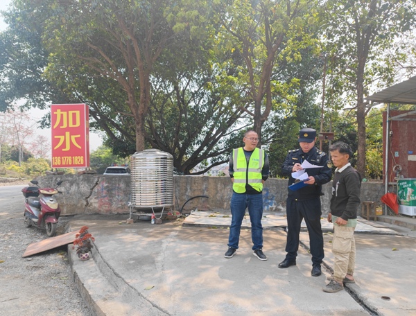 巡查组在国道324线巡查时,发现G324线K1836+400米公路右侧、K1827+700米公路左侧存在违法私自开设路口、违法开设加水站等情况,均处于弯道下坡处,并有大型车辆出入,存在较大安全隐患。工作人员现场对当事人进行说服教育,并发出违法行为通知书,明确整改措施、时间要求、责任人,责令当事人立即设置安全标志,限期清除,消除安全隐患,恢复公路原状。