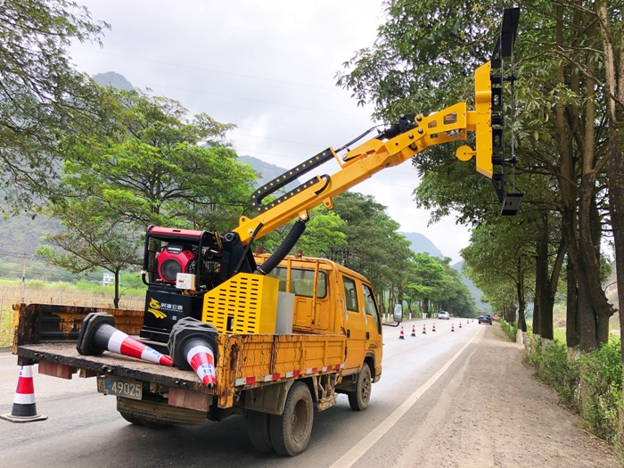 在该中心管养的国省干线上,经常看到养护车上载着多功能修剪机,熟练的“操作手”调整好角度后,伸出修剪机械臂,在刀片的快速旋转下,轻松将遮挡行车视线的树枝修剪平整,实现精准、高效的效果。“有了多功能修剪机,修剪树枝效率高,而且修剪平整。以前修剪高处树枝,需要人工站在升降平台里使用油锯切割树枝,还需要司机和修剪工不断喊话调整角度才能修剪,存在极大的安全隐患,现在这些问题完全不用担心了。”都安养护站站长高兴地说道。