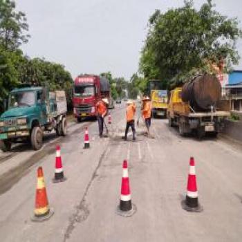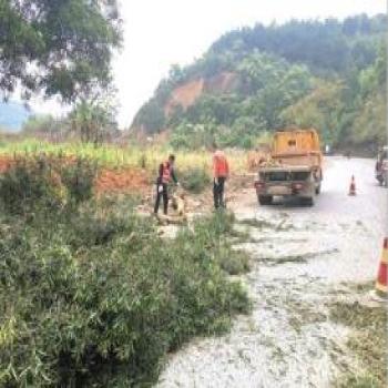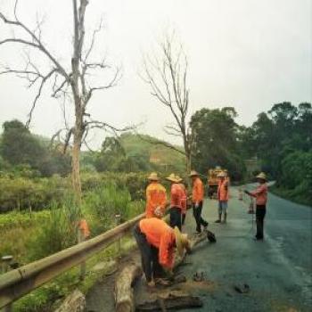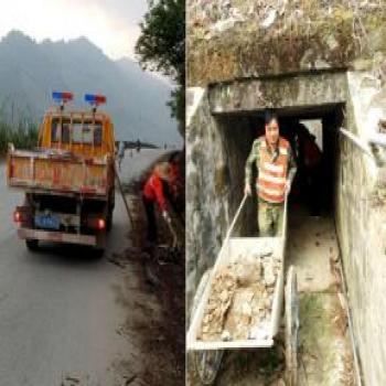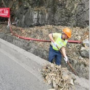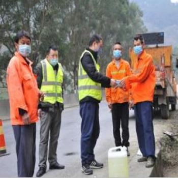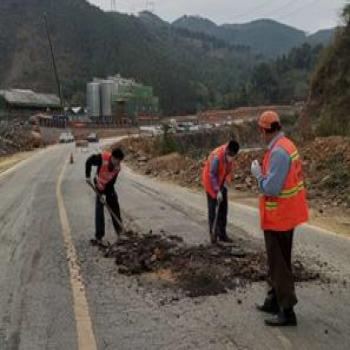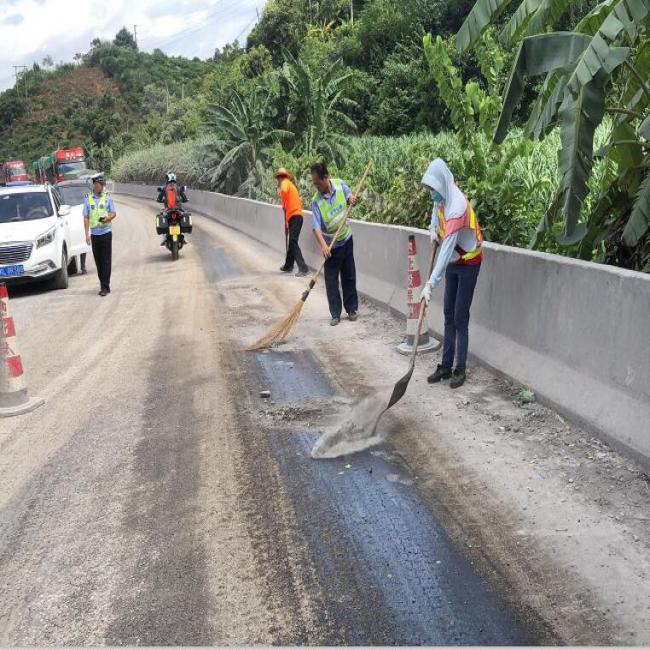凌云公路养护中心紧急清理路面油污,确保群众安全出行