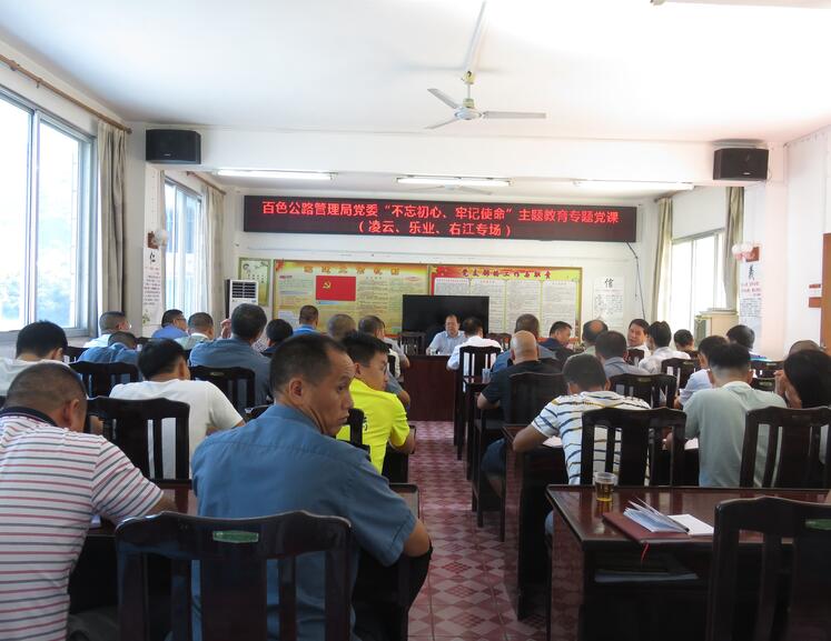 林立宽副局长在凌云公路管理局局机关四楼会议室主持召开了《百色公路管理局党委“不忘初心、牢记使命”主题教育专题党课(凌云、乐业、右江专场)》,会上,林立宽听取了凌云、乐业、右江公路管理局关于公路大中修工程管理调研课题和“不忘初心、牢记使命”主题教育开展的情况汇报,并对与会党员提出的意见和建议认真的反馈和回答。林立宽副局长在会上做了要求:一是各公路局党委要深入开展“不忘初心、牢记使命”主题教育活动,主题教育要确保党员全覆盖,做到党员一个都不能少。二是要深刻领会,提高站位,全面理解“不忘初心、牢记使命”主题教育的重大意义,围绕目标,狠抓落实,营造氛围,抓细抓实。三是把主题教育同公路养管、提质增效、创新发展相结合起来,同推进基层党支部建设,结合部门工作规范化,坚持做到两手抓、两促进、两不误,确保各项工作得成效。