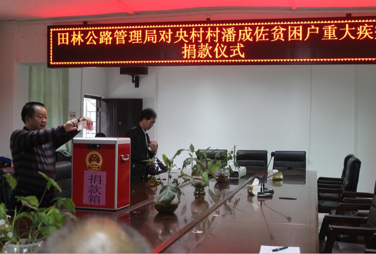日,田林公路管理局干部职工义务对所帮扶的田林县浪平镇央村村潘成佐贫困户捐款2000元,据悉,该贫困户因交通事故造成重型颅脑损伤,后续需要高昂医疗费。