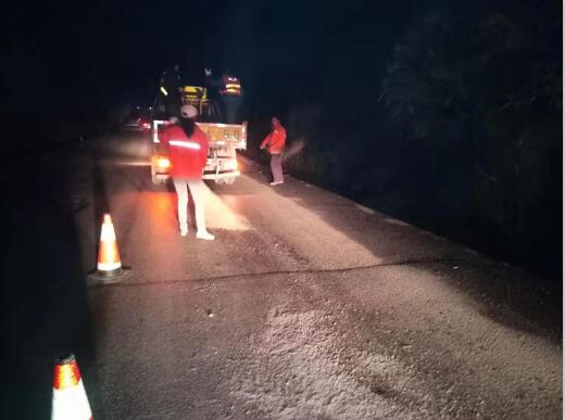 1月17日,S215线K107+500至K108+800货车漏油影响交通安全,平果公路养护中心组织人员机械连夜处置,采用石粉铺洒吸油、清扫等措施,及时消除了安全隐患。