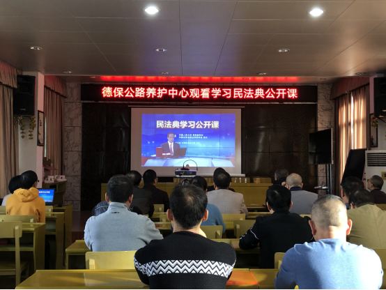 10月12日上午,德保公路养护中心组织全体干部职工在中心二楼大会议室观看民法典学习公开课,共有职工45人参加。