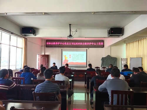 10月12日下午,田林公路养护中心党总支副书记吕军刘以《学习习近平在“不忘初心、牢记使命”主题教育总结大会上的讲话精神》为题,为西林公路养护中心全体干部职工上了一堂深刻生动的主题党课,并组织相关科室人员开展业务交流。