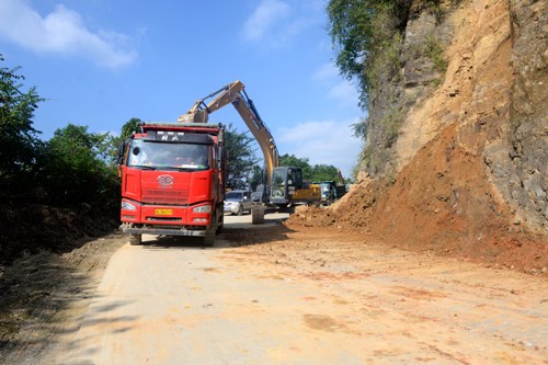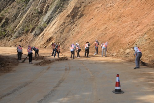 全面清理汛期公路边坡塌方,保持道路安全畅通。每天投入3台大型挖掘机和6辆运输车对G212线纳良至乐业公路沿线历史遗留和汛期发生的28处近2万立方边坡塌方进行全面清理。同时安排5台小型挖掘机对30公里汛期泥石流、边坡塌方造成公路土质排水沟及涵洞堵塞情况进行疏通清理整治和修复,保障道路安全畅通。
