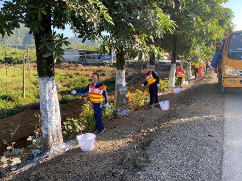 11月12日下午,德保公路养护中心党总支组织党员到都安养护站,与一线职工们开展“两同”(同吃同劳动)活动,对辖区干线公路进行路树刷白工作。