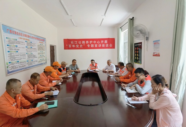 5月25日,右江公路养护中心到泮水公路养护站开展“百年党史”专题宣讲座谈会。