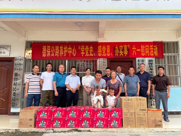 为关爱儿童成长,传递爱心,深入贯彻“学党史、感党恩、办实事”,6月1日上午,德保公路养护中心领导班子及帮扶干部一行9人,来到龙光乡那印村看望慰问贫困户儿童,为孩子送上节日的祝福。