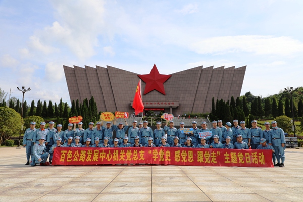 为迎接中国共产党成立100周年,回顾党的光辉历程,激励广大党员干部继承和发扬党的光荣传统,牢记初心使命,6月16日至18日,百色公路发展中心机关党总支组织党员干部共47人到桂林市全州县、灌阳县开展“学党史 感党恩 跟党走”主题党日活动,重温湘江战役历史,缅怀革命先烈,赓续共产党人的精神血脉。