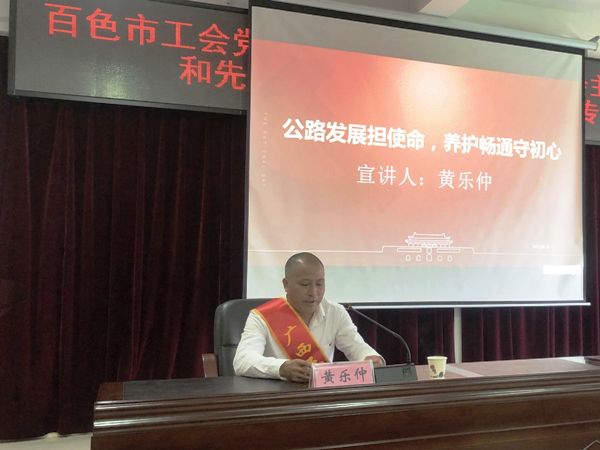 为充分发挥先进典型的示范带头作用,激发干部职工爱岗敬业、敢于担当、干事创业的热情,6月18日,百色市工会开展党史学习教育——先进人物专题宣讲活动。德保公路养护中心都安养护站站长、广西“五一劳动奖章”获得者黄乐仲受邀做题为“公路发展担使命,养护畅通守初心”的个人先进事迹宣讲。
