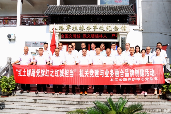 6月18日,广西壮族自治区右江公路养护中心组织党员以及入党积极分子共23人前往八路军桂林办事处纪念馆开展“红土铺路党旗红之红城担当”机关党建与业务融合品牌创建活动。