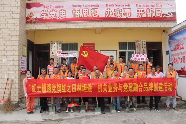 为充分发挥党的政治核心作用,推动机关党建与业务工作深度融合,促进公路沿线居民形成共同爱路护路的意识。9月27日,田林公路养护中心党支部联合利周瑶族乡和平村党支部开展以“红土铺路党旗红之田林坦途”为主题的党建与业务融合品牌创建活动,组织党员干部在国道357线和平村路段清扫路面垃圾、清理路边水沟、杂草,为和平村村民出行保驾护航。