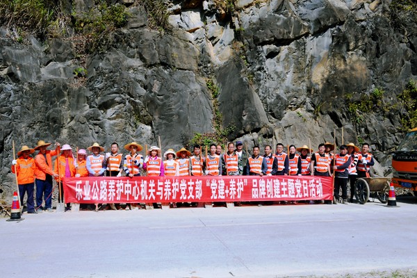 为充分发挥党建引领作用,促进“我为群众办实事”实践活动和“红土铺路党旗红之秀美乐业”党建品牌与机关业务深度融合,11月10日,乐业公路养护中心机关与养护党支部组织中心机关全体党员、入党积极分子20人和同乐养护站职工一起到G212线K2121+100~K2122+300路段开展“党建+养护”主题党日活动。