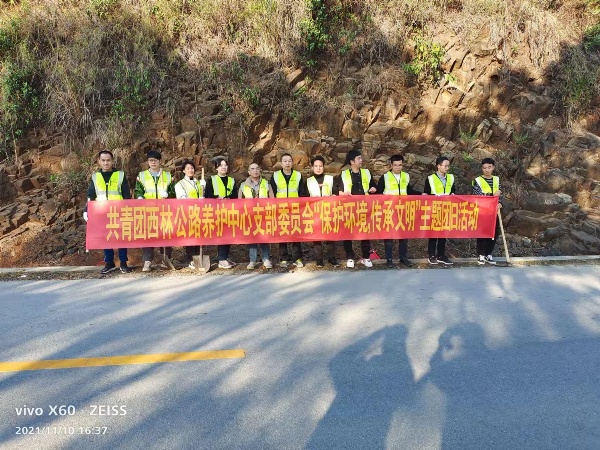 为深入学习贯彻习近平总书记生态文明思想,深化党史学习教育,共青团西林公路养护中心委员会开展“保护环境,传承文明”的主题团日活动。主题活动以志愿服务活动为载体,充分发挥党员模范带头作用,强化党建带团建,凝聚党团力量的目的。11月10 日,该中心部分在职党员及共青团员共20人前往管养路线G246线一同清理排水沟、路面垃圾。