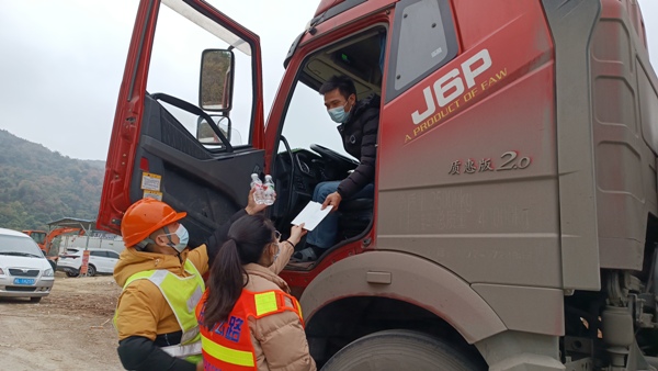 活动中,田阳中心共青团志愿者为卡车司机精心准备了泡面、矿泉水等食物,并积极向过路的卡车司机发放交通安全宣传单,普及公路法、安全法,提醒卡车司机在工作之中注意做好个人防护工作。